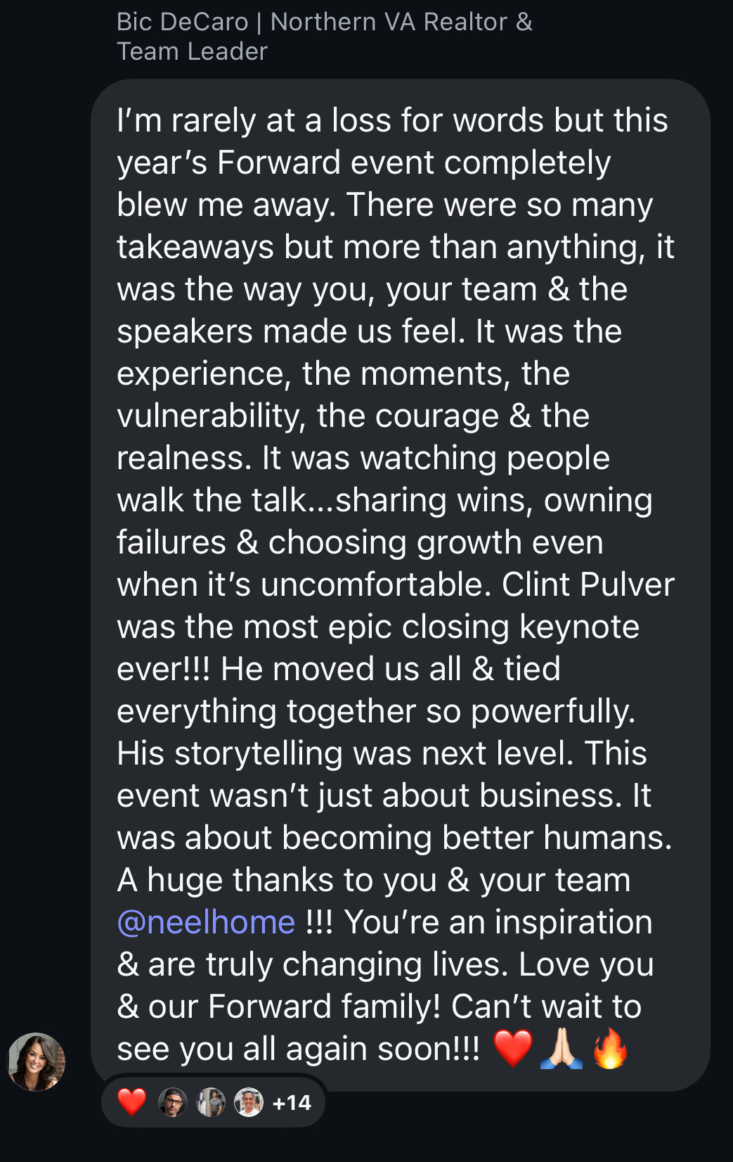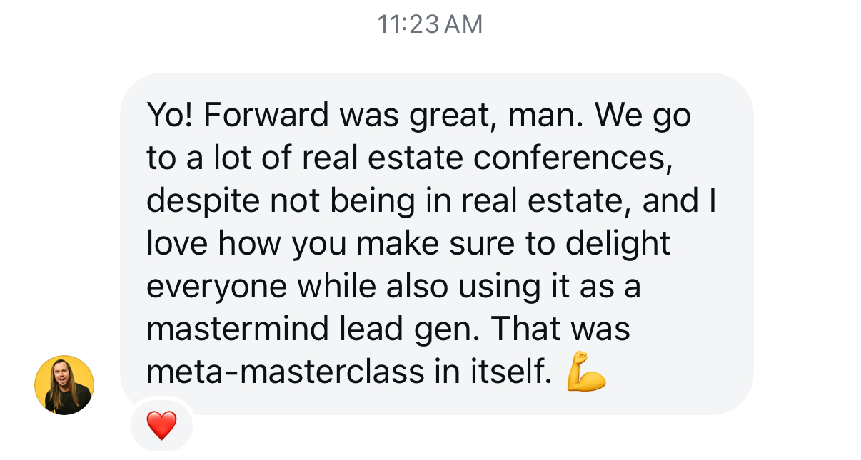 Real estate agents, Mortgage loan officers + some from the financial/insurance industry and other entrepreneurs. Forward is for those who want to level up their personal brand to attract more clients and bigger opportunities.